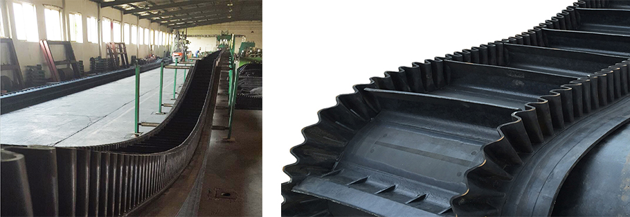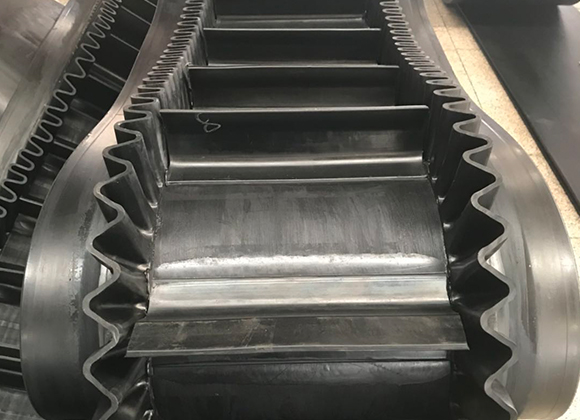 產品應用: 廣泛應用于港口、碼頭、冶金、礦山、建材、水泥、化工等領域。能以0°- 90°傾角范圍內,提升比重為0.5-2.5T/m3的各種散狀物料的特點。 產品結構與規格: 波形擋邊帶由基帶、擋邊、隔板組成,采用二次硫化工藝,使其具備了耐屈撓性高、拉力強、耐磨性好等大大提高。